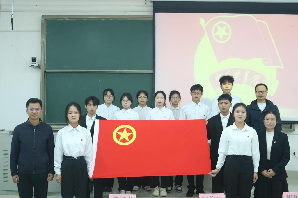 陆俊先结合自身入团经历,勉励团员们要在学习生活中当好表率,以更高标准要求自己,让青春在奋斗中焕发绚丽光彩。黄挺龙寄语新团员们要做知行合一的实干者、勇于创新的开拓者、服务同学的奉献者。