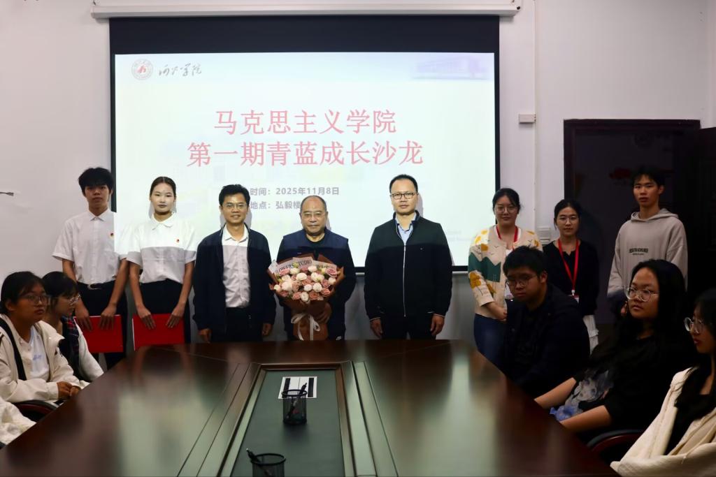11月8日下午,美高梅mgm集团2288首期“青蓝成长沙龙”在弘毅楼2-208顺利开展。活动特邀中南大学教授、博士生导师、美高梅mgm集团2288银龄教授张卫良主讲,学院党委副书记陆俊先、团委书记黄挺龙及师生代表共同参与。
