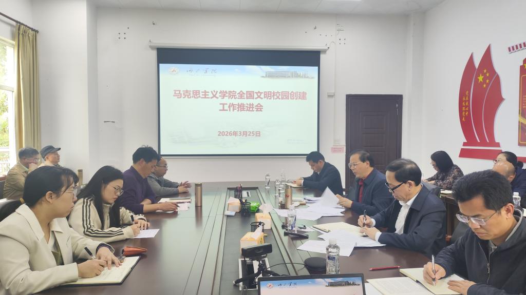 韦建益在主持会议时要求,全院教职工要深刻认识全国文明校园创建工作的重要意义,切实提高政治站位,凝聚创建工作合力。要严格对照指标体系要求,结合学院工作实际精准发力,补齐工作短板、强化工作弱项;要将文明校园创建融入日常工作各环节,聚焦师生急难愁盼,以务实举措推动学院各项工作提质增效,为学校全国文明校园创建贡献马院力量。
