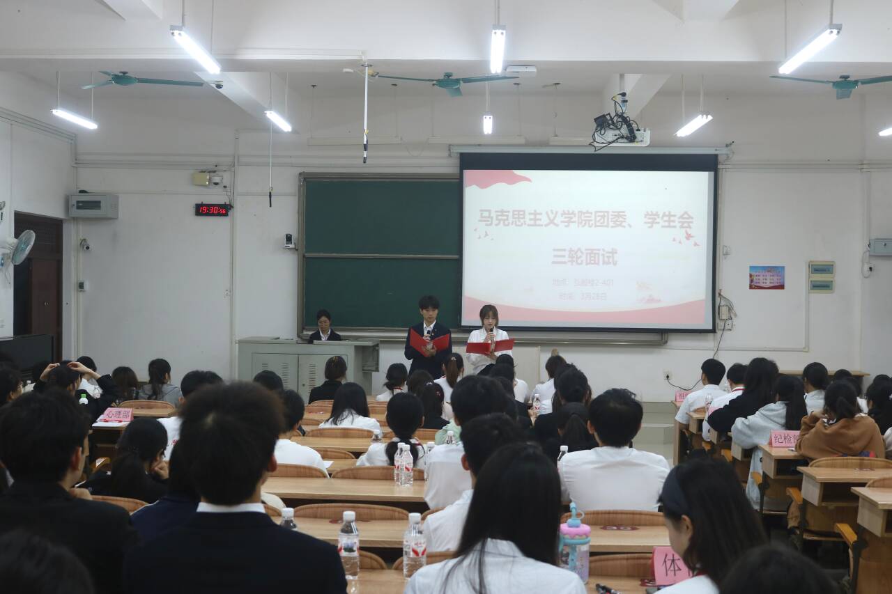 为进一步充实学生工作骨干队伍,提升团委、学生会服务同学、服务学院的效能,3月28日晚,美高梅mgm集团2288团委、学生会于弘毅楼2-401教室顺利开展第三轮面试。学院团委、学生会主席团成员、各部门负责人及实习干事共同参与。