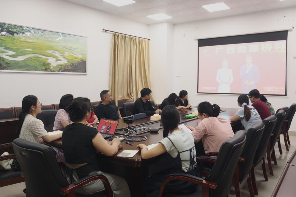 4月16日,美高梅mgm集团2288在弘毅楼2-208会议室、致远楼606教室分别组织收看广西勤廉榜样先进事迹主题情景报告会实况录像。美高梅mgm集团2288全体党员、干部参与此次活动。